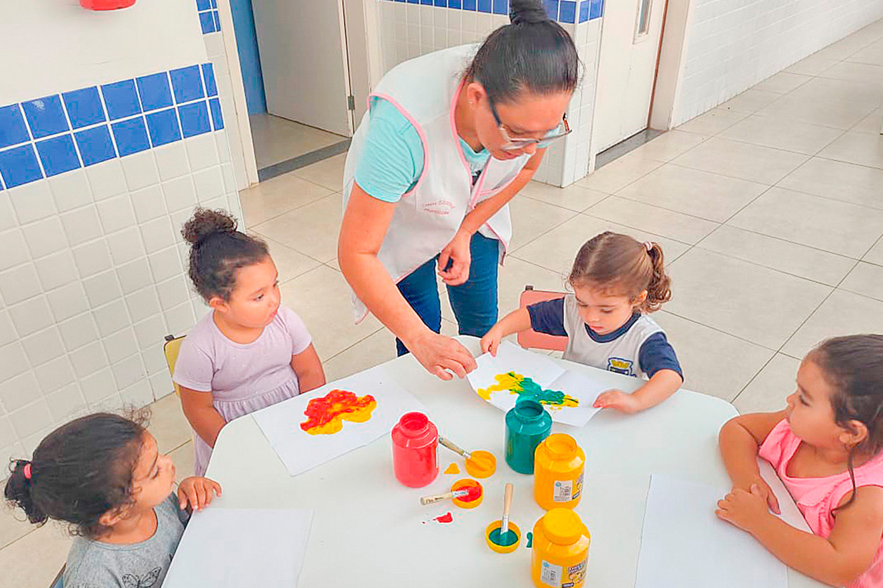 Educadora do Centro Educacional Arakan realizou uma atividade pedagógica que trabalhou a percepção das cores com os alunos do maternal I A