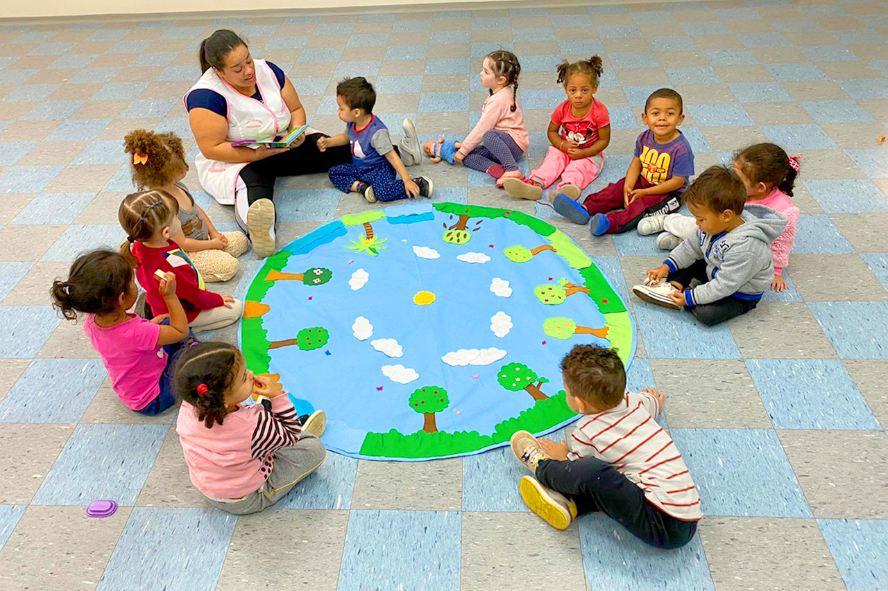 Turma do jardim I A do Centro Educacional Benedicta Stefano Antunes de Oliveira aprende letras e cores em atividade lúdica