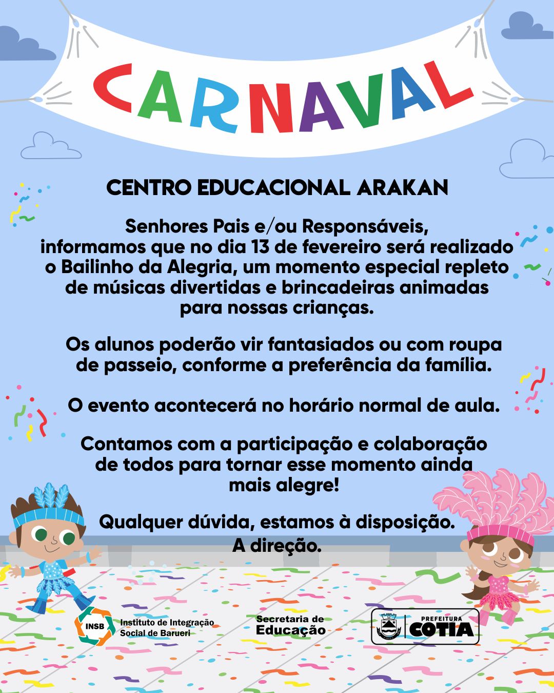 Senhores pais e responsáveis, a diretora Renata Brito, do Centro Educacional Arakan convida pai ...