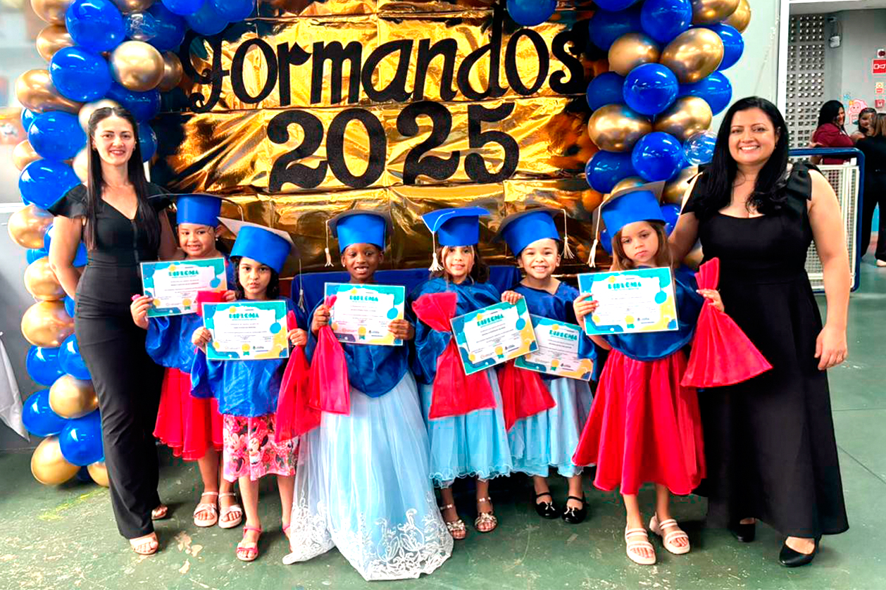 O evento contou com apresentações ensaiadas com músicas e coreografias, respeitando o ritmo e a espontaneidade da faixa etária, e com a entrega simbólica dos certificados de formatura, marcando esse importante encerramento de ciclo. A participação ativa das famílias e o acompanhamento da equipe pedagógica e gestora tornaram a celebração um marco positivo e memorável, reforçando os vínculos entre escola e comunidade e registrando, em fotos e vídeos, a memória afetiva desse momento especial.