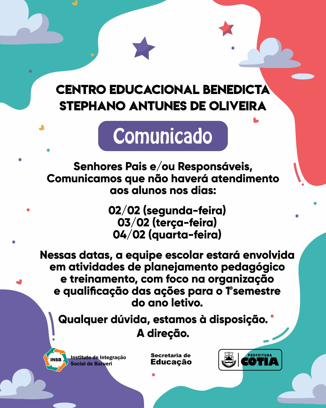 Senhores pais e responsáveis, informamos que no dia 05 de fevereiro (quarta-feira)